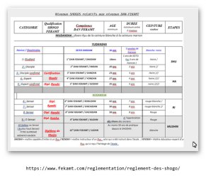 Les évaluations se font deux fois par an, au cours d’un stage national, avec la présence au jury, des membres désignés de la commission technique, devant justifier d’un niveau minimum, de Renshi, ou équivalent, reconnu par notre Académie.